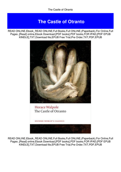Free download or read online the castle of otranto pdf epub book. The castle of otranto. The book was published in multiple languages including english consists of 125 pages and is available in paperback format. Transcribed from the 1901 cassell and company edition.